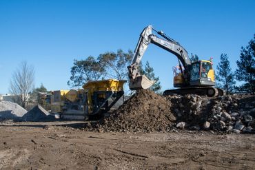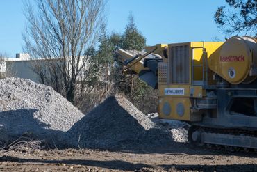Crushed stone sourced directly from an existing on-site stockpile is being repurposed as the base layer for the car park. This efficient reuse of materials not only reduces waste but also provides a stable, cost-effective foundation while the main data centre building progresses nearby.